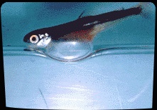 Small alevin emerge from the eggs. These tiny salmon are only 2.5 centimetres long. They have an attached yolk-sac that nurtures them until they are large enough to feed.