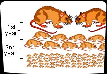 Brown rats are found in basements, alleys, and sewers across Canada. They breed all year long. A female rat has an average of 10 babies per litter, and five litters per year. One pair of brown rats can easily multiply into 1,250 rats within two years.
