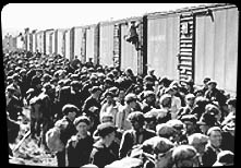 Unemployed men travelled across the country because they hoped to find work elsewhere. Many could not afford to ride on passenger trains. They often stole rides in, or on, freight trains. "Riding the rails" was illegal, but there were too few police officers to catch the many riders.