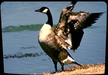 Canada geese have brown bodies, black heads and necks, and a white throat patch. They spend fall and summer in Canada, but fly to the United States for winter and spring.