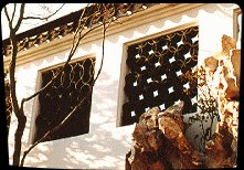 This high wall blocks out the noise and activity of the world outside. Its special windows have been carefully placed to allow light into the garden while keeping out the noise of the city. They are called "leak windows" because they allow light to leak in from outside the garden walls.
