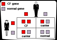 One person in 20 carries a copy of the cystic fibrosis gene. These people are called carriers. If two carriers have a child together, there is a 25 per cent chance their child will have the disease. There is also a 50 per cent chance that their child will be a carrier. Scientists have designed tests to identify carriers of the CF gene.